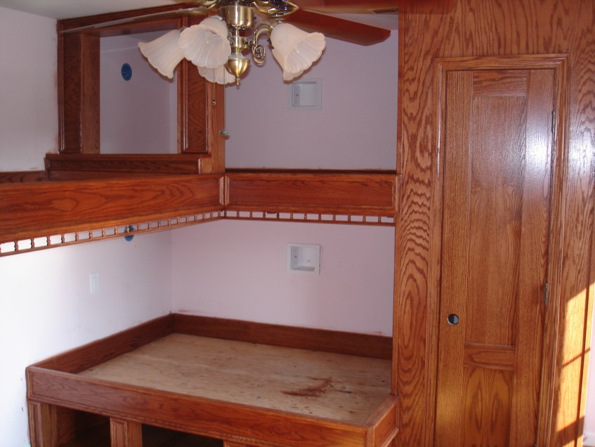 Wood finishing in bedroom, Leesburg, Va. Published September 15, 2011 at 2592 × 1944 in Photo gallery Project included stain and urethane of new red oak built-in bunk beds and closet area. Like Loading...