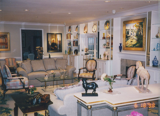 Project included ceiling drywall demo and new drywall installation with museum quality electrical task and wall washer down lighting installed for extensive art collection. Also, custom carpentry french doors, crown molding, chair rail, mantel installations, as well as painted ceiling, wall, trim finishes and remount installation of artwork on walls.